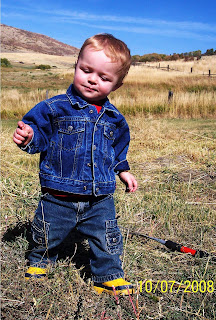 We are on our way to the Cub River Ward's Halloween party and Hunter looks so stinking cute!